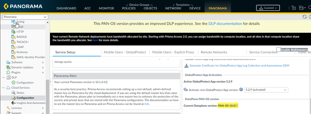 - Cloud Services Plugin 3.0 Preferred runs on the PAN-OS version 10.0 dataplane, which is the same dataplane as that running on Prisma Access 2.2 Preferred.