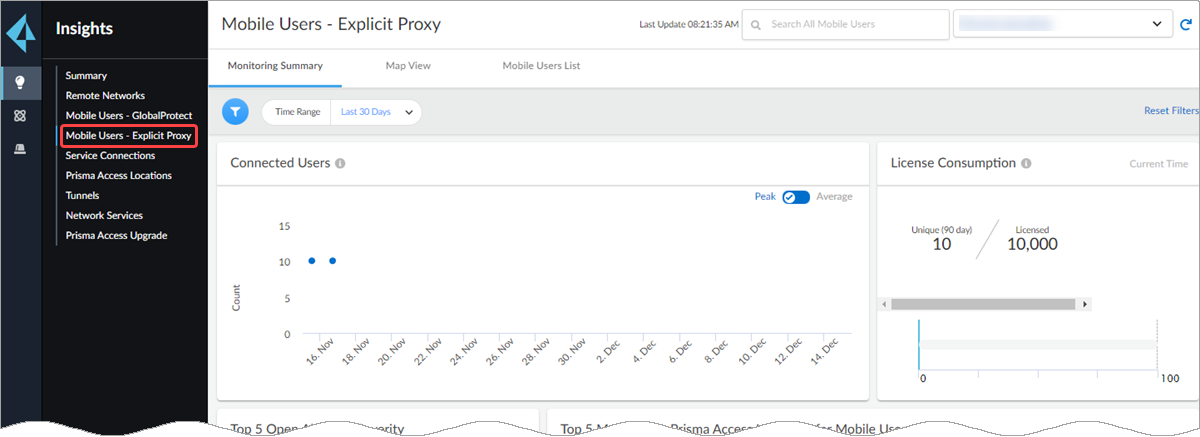 The Connect Method column shows you whether the user is connected to Prisma Access using GlobalProtect or explicit proxy. The columns displayed