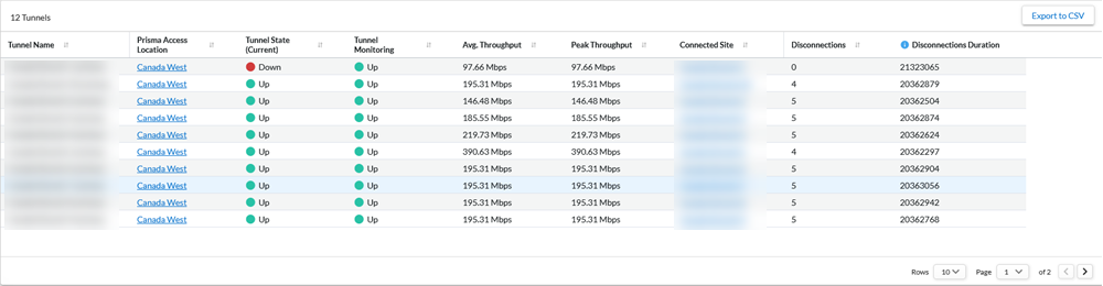 their tunnels. The tunnel names are retrieved from the Prisma Access