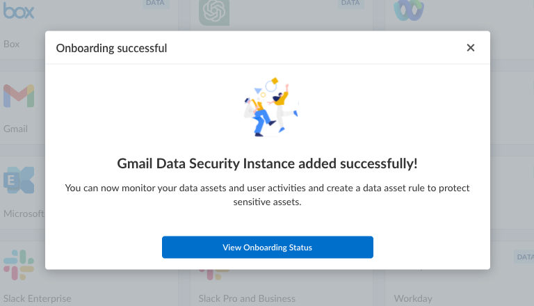 After you enter the Gmail admin email, on successful onboarding, the following message is displayed.