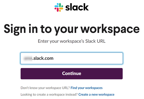 Select Slack Enterprise.Select Connect to Slack Enterprise Account.Enter your team’s Slack domain or workspace (top-level enterprise organization), then Continue.