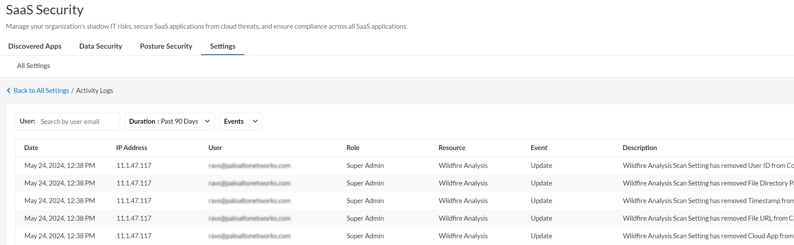 - Log in to Strata Cloud Manager.Select ConfigurationSaaS SecuritySettingsScan SettingsWildFire Analysis.Locate the WildFire Analysis toggle and verify that WildFire is enabled.By default, Data Security enables WildFire analysis data pattern, but it’s possible that your organization disabled it previously.If any of your policies use the WildFire data pattern, you must remove the data pattern from those policies before you can disable WildFire analysis.Select the Files to Submit.