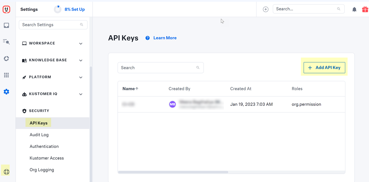 SSPM gets access to your Kustomer instance through an API access key. During the