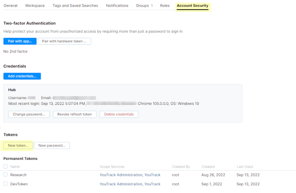 - Identify your YouTrack instance name.To identify your YouTrack instance name, open a web browser and go to your YouTrack login page. In your login URL, your instance name is shown as a subdomain of the URL ( <instance-name>.youtrack.cloud).Make note of your instance name before you continue to the next step. You must provide the instance name to SSPM during the onboarding process.Generate and copy a permanent token.