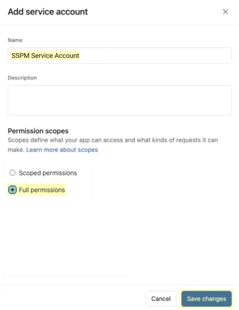 • Specify a Name for the service account. For example, SSPM Service Account.