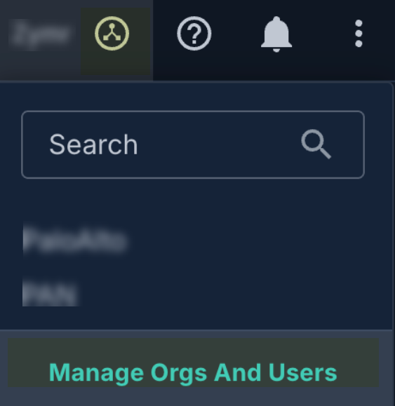 From the API key's entry in the list, click the copy icon to copy the key. Paste the key into a text file.Don’t continue to the next step unless you have copied the API key. You must provide this key to SSPM during the onboarding process.Identify your Organization ID. To retrieve your Automox Organization ID, complete the following steps:- Click the organization selector icon in the upper right corner of the console and select Manage Orgs and Users.