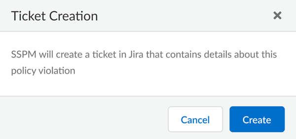 - Log in to Strata Cloud Manager.Select ConfigurationSaaS SecurityPosture Security.Navigate to a rule violation.In the rule violation, go to Ticketing.Select a Jira or ServiceNow instance.If no Jira or ServiceNow instances are linked to SSPM, you are prompted to link SSPM to a Jira instance or to link SSPM to a ServiceNow instance.Specify where you want to create the ticket, and ticket information.