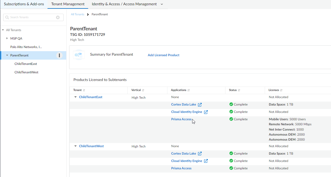 tenant, such as Prisma Access, Prisma SD-WAN, Strata Logging Service, and more. There are