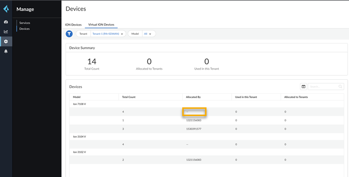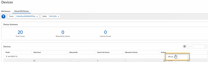 - Allocated to Clients—Indicates the number of virtual ION device licenses allocated to any of its child tenants.