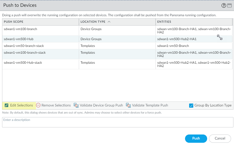 - Select Commit and Push to Devices.Edit Selections on the lower left side of the screen.
