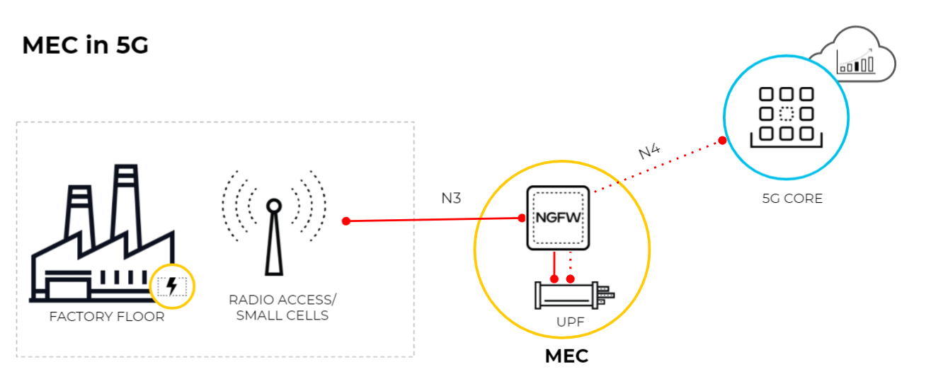 illustrates MEC in a 5G network where the User Plane Function (UPF)