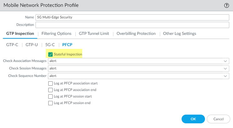 your changes, and reboot.If you enable stateful inspection for PFCP traffic, the following options are not available: