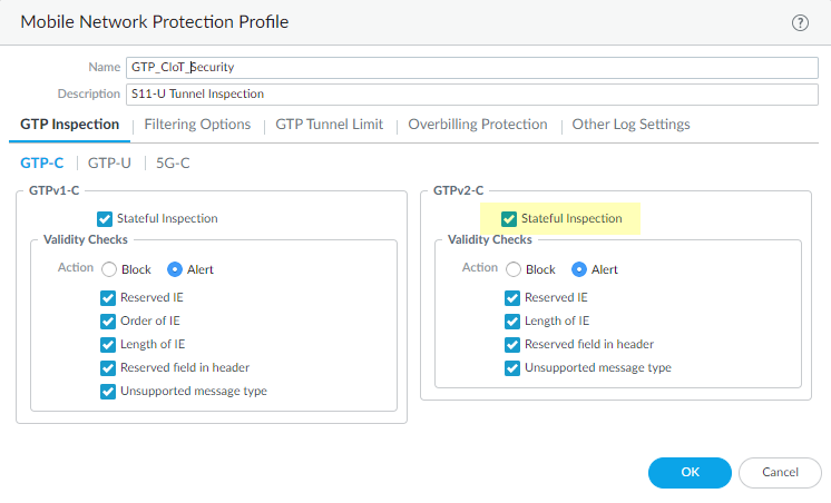 Create a Mobile Network Protection Profile and enable GTP-U Content