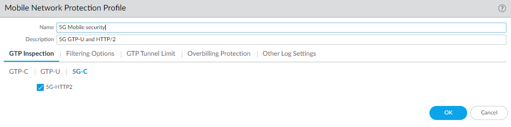 2. Enable inspection of 5G HTTP/2 control packets; create a Mobile Network Protection profile.