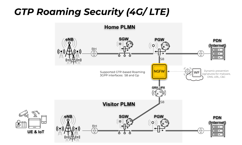 GTP deployments on a Palo Alto Networks firewall include roaming security.