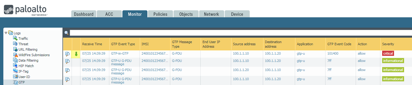 - Other abnormal GTPv1-C, GTPv2-C, or GTP-U messages