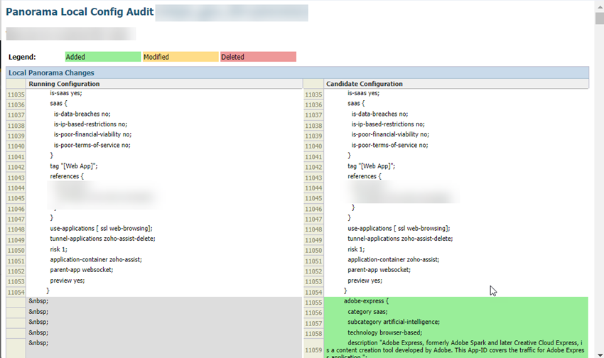 - Green Panes: Created or added. They are present in Strata Cloud Manager, but not on the original device.