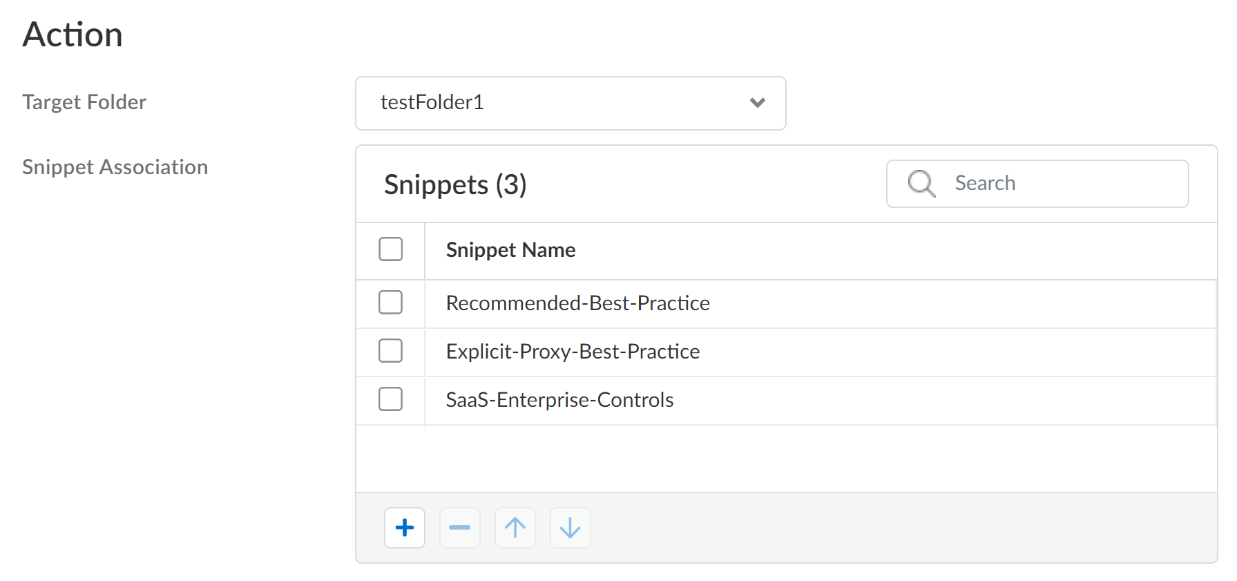 Folders are used to logically group your firewalls for simplified configuration management. Skip this step if you created a device onboarding rule to automatically move the firewall to a target folder.