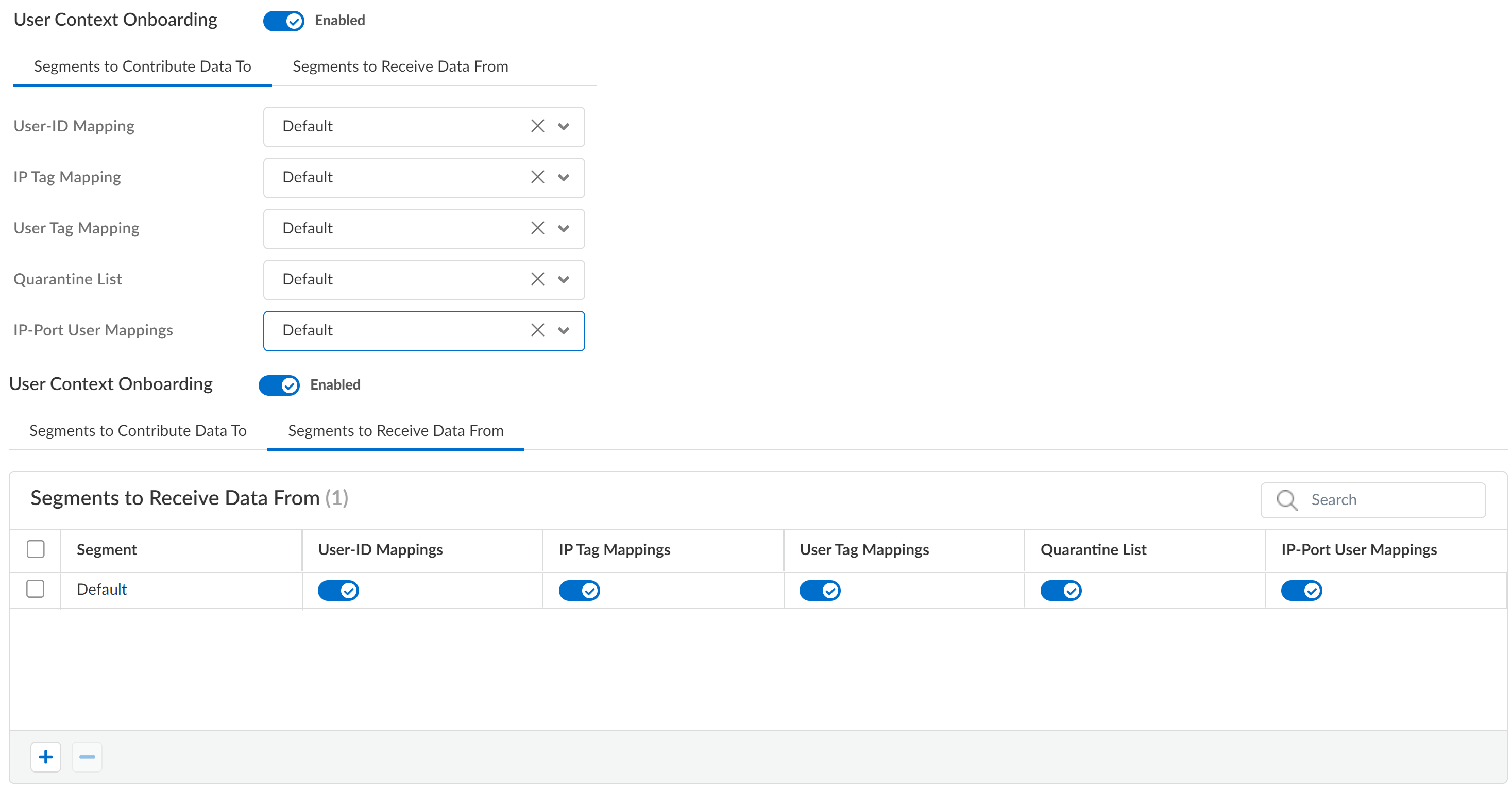 If enabled, you must configure the Segments to Contribute Data To to customize the segment mappings the firewall sends to CIE and the Segments to Receive Data From to customize how CIE provides segment mappings to the firewall.