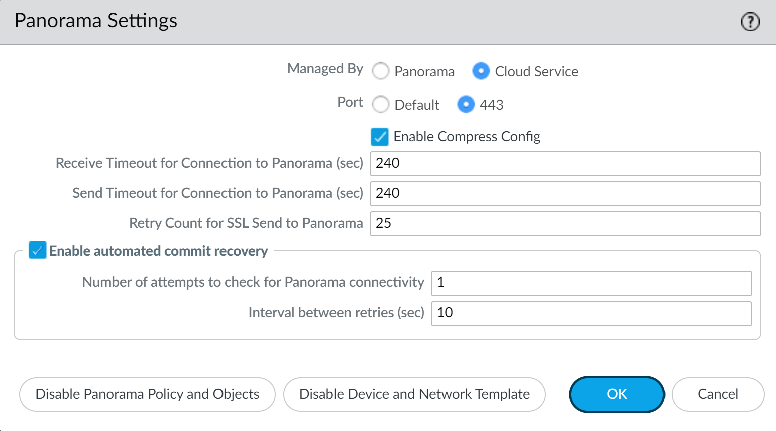 1. Select DeviceSetupManagement and edit the Panorama Settings.