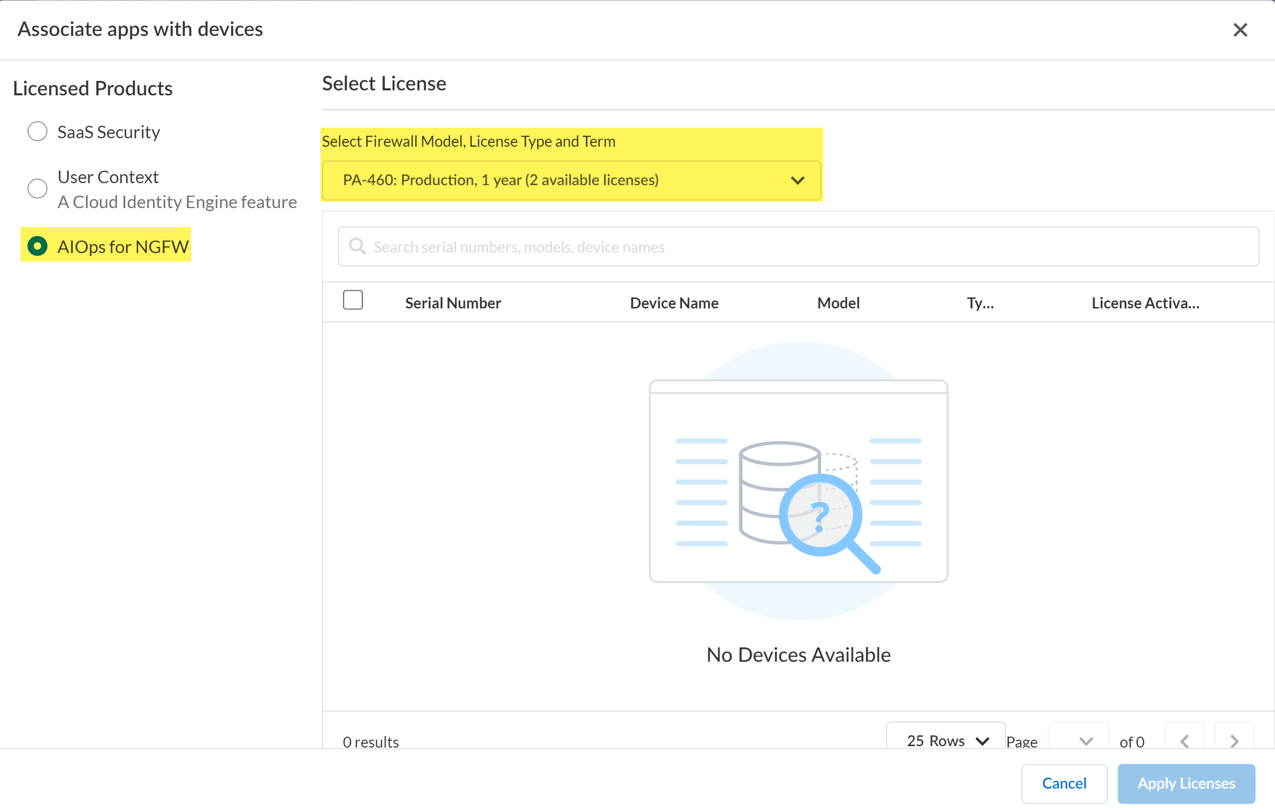 2. For the Licensed Products, select Strata Cloud Manager or AIOps for NGFW.