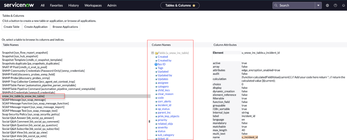 Enter your ServiceNow fields in this table to make sure ServiceNow