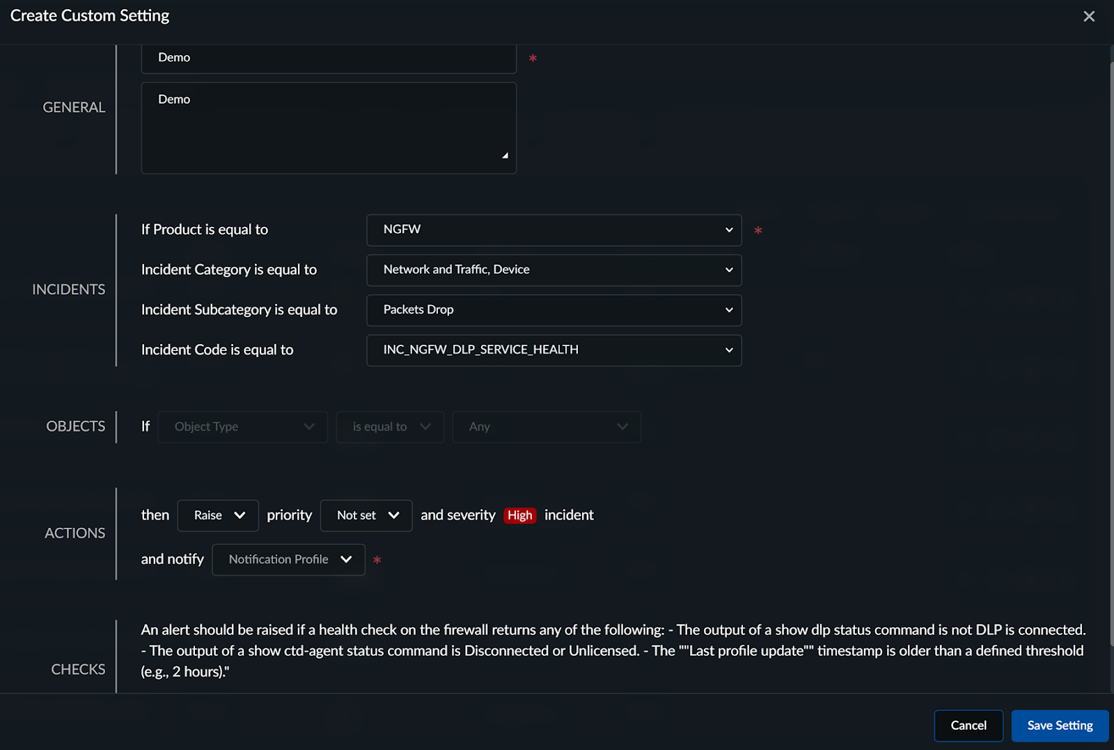 conditions are met. Select Raise or Suppress and set the priority. Severity of