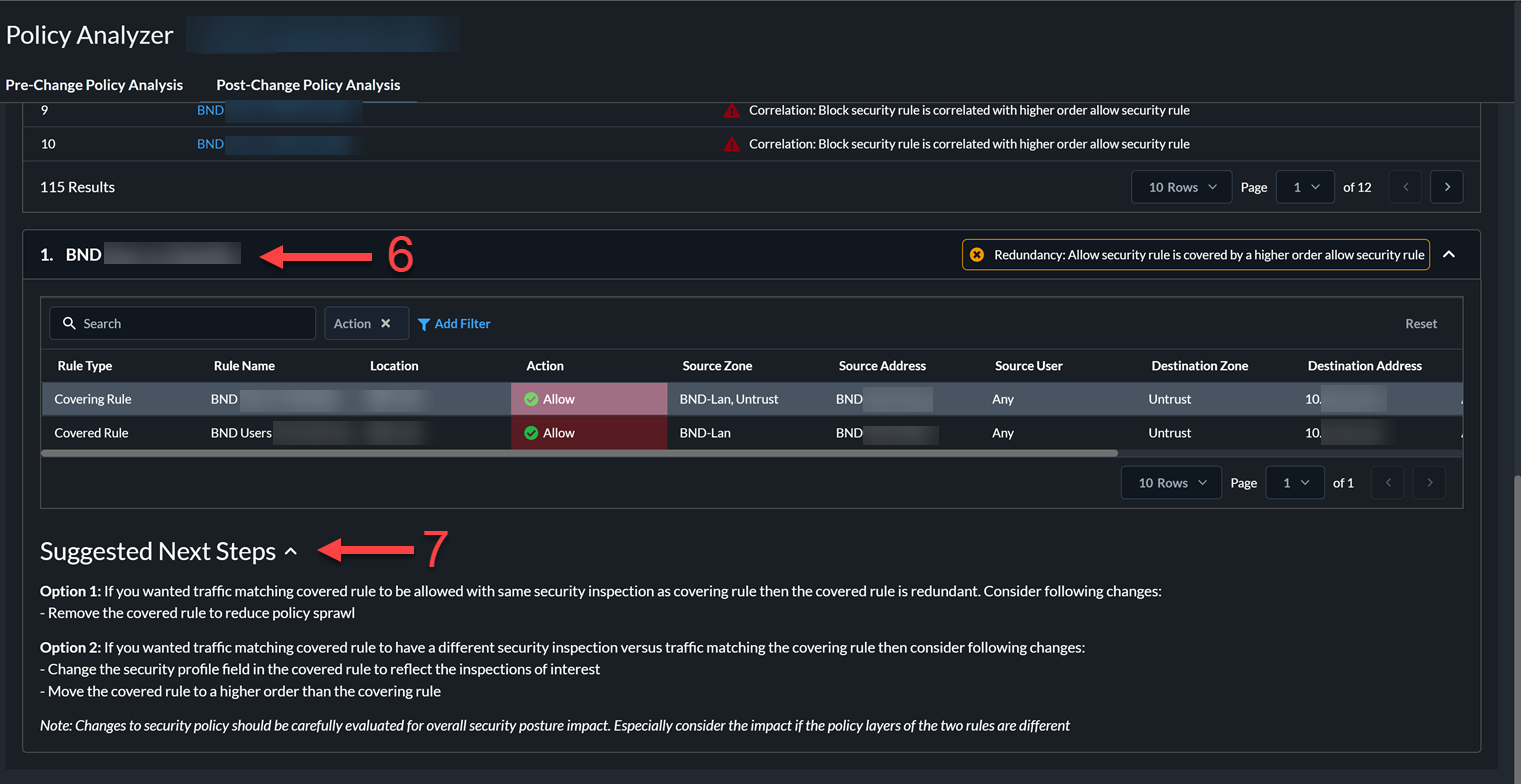 Strata Cloud Manager analyzes device configurations as soon as you push them, detecting anomalies. It also performs an analysis every 4 hours. For Panorama managed configurations, Strata Cloud Manager performs the analysis when you commit the configuration on Panorama. Policy Analyzer analyzes this configuration for Shadows, Redundancies and other anomalies, and the results are available for review in ConfigurationPOSTUREPolicy AnalyzerPost-change Policy Analysis.