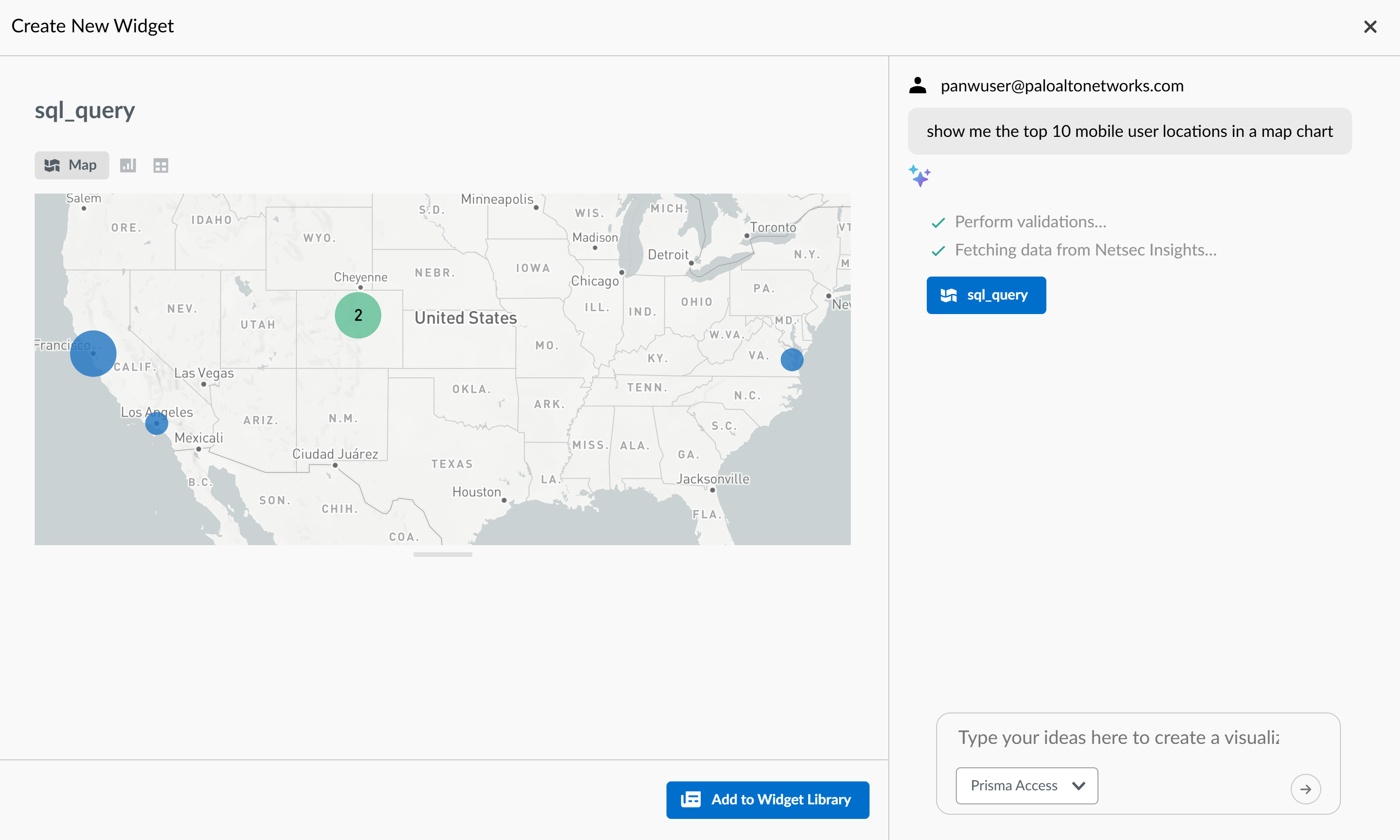 Create widgets quickly by using natural language queries to specify the data you want to visualize.