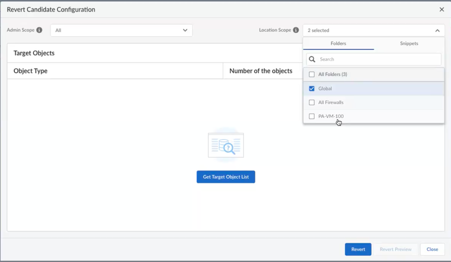 - Navigate to the relevant configuration sections to confirm that the reverted objects have been removed or restored to their previous state. Verifying the revert ensures the intended changes have been successfully undone and your system's configuration is in the expected state. This confirms the integrity and correctness of the rollback operation.