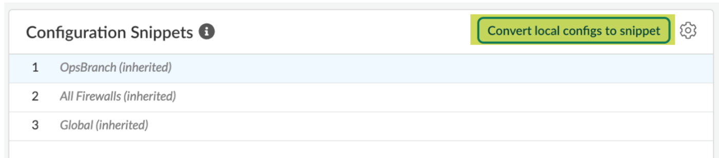 On the Overview page, under Configuration Snippets, select Convert local configs to snippet.