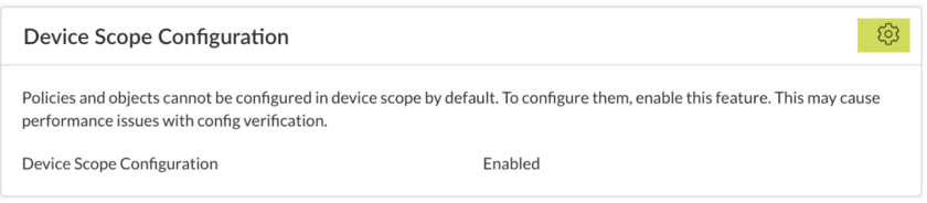 Select the device whose local configuration you want to convert.You're redirected to the Overview page.You cannot configure policies and objects in device scope by default. To configure them, enable Device Scope Configuration.