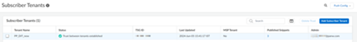 Validate the subscriber tenant.After successful validation, a message confirms the tenant as trusted, establishing trust between the subscriber and publisher tenants.
