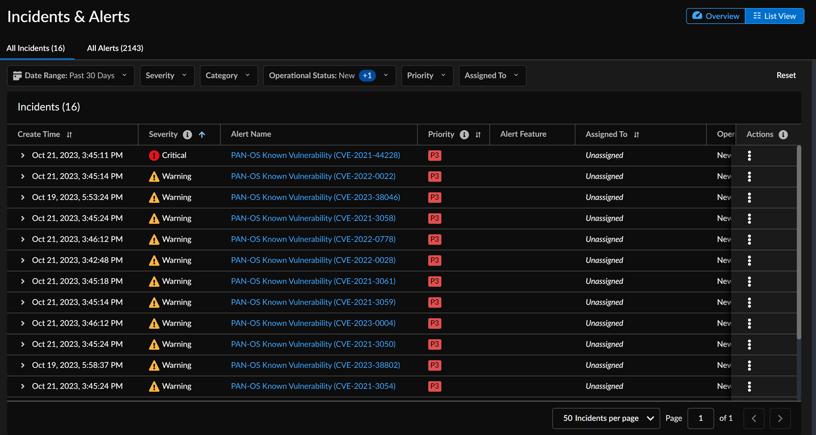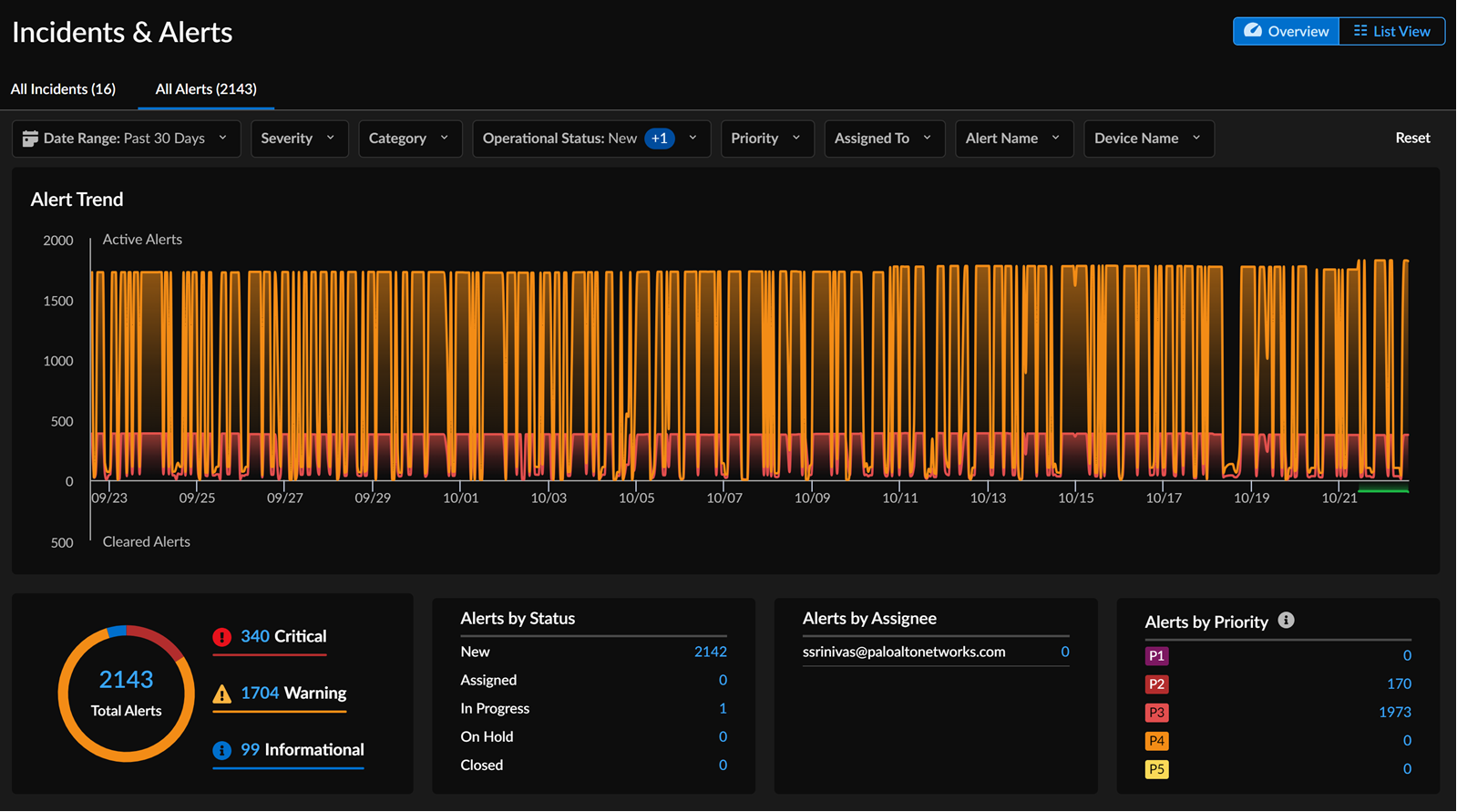 or more issues that it has detected with your firewall deployment. With IncidentsNGFW, you get a singular view of your incidents and alerts across NGFWs.