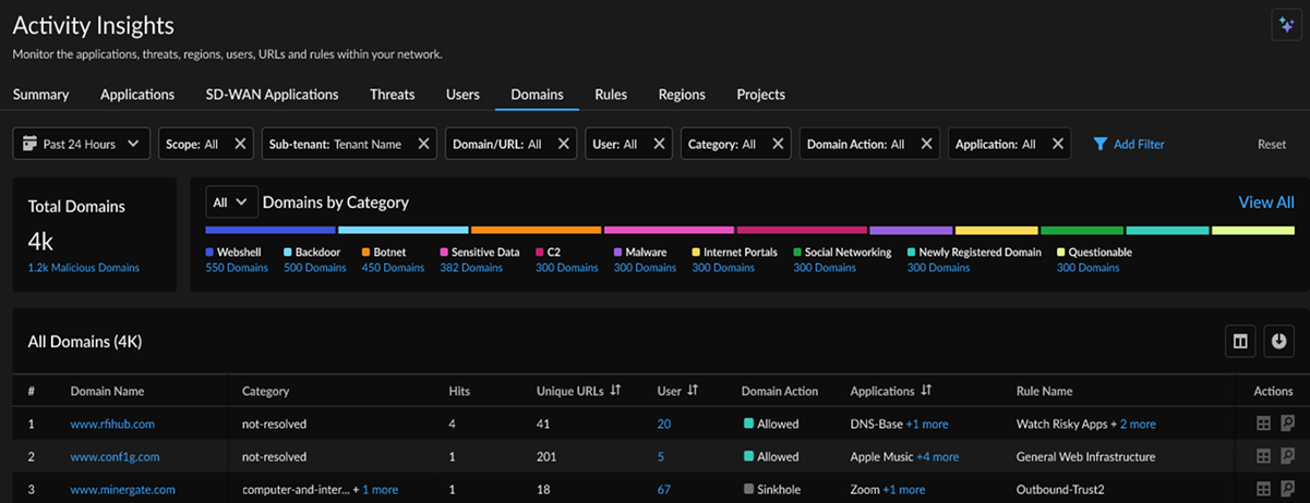 a unified view of domain activity. This view summarizes the domain and URL activity