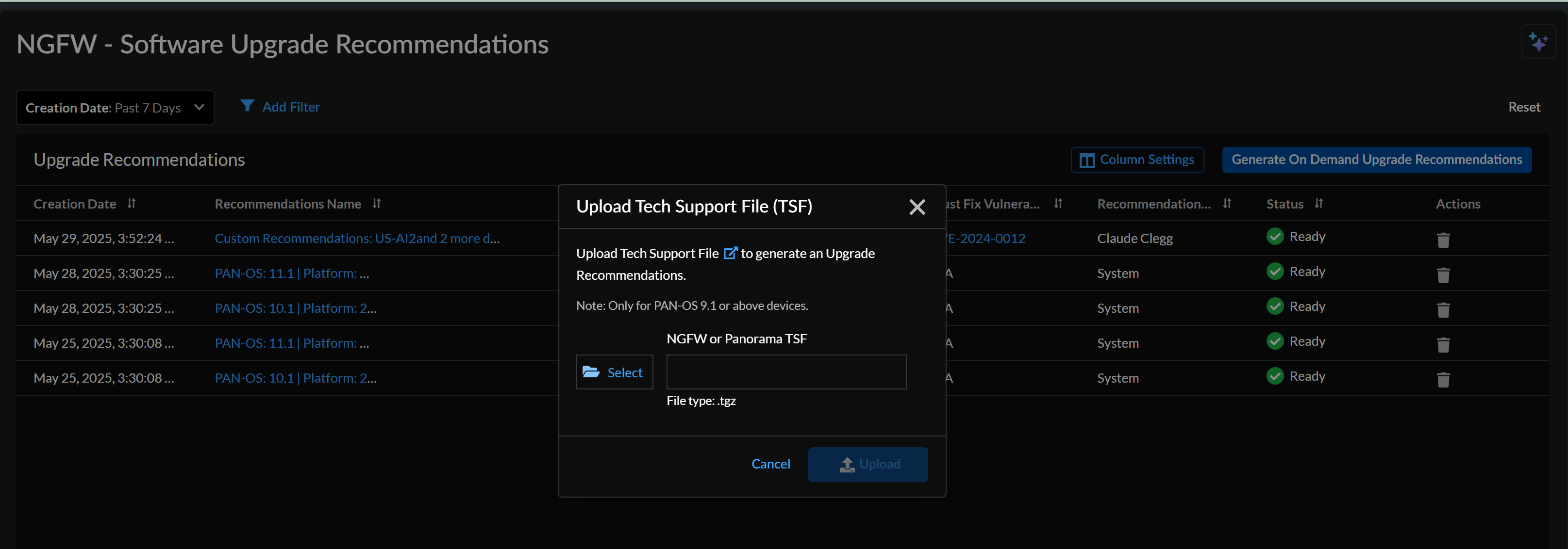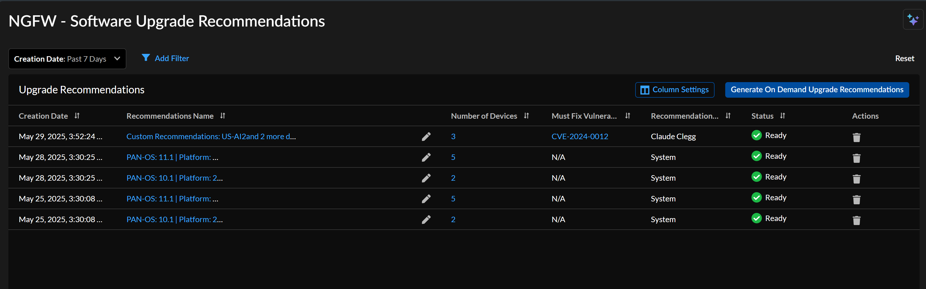 In InsightsNGFWUpgrade Recommendations, you can create recommendations to determine the best software