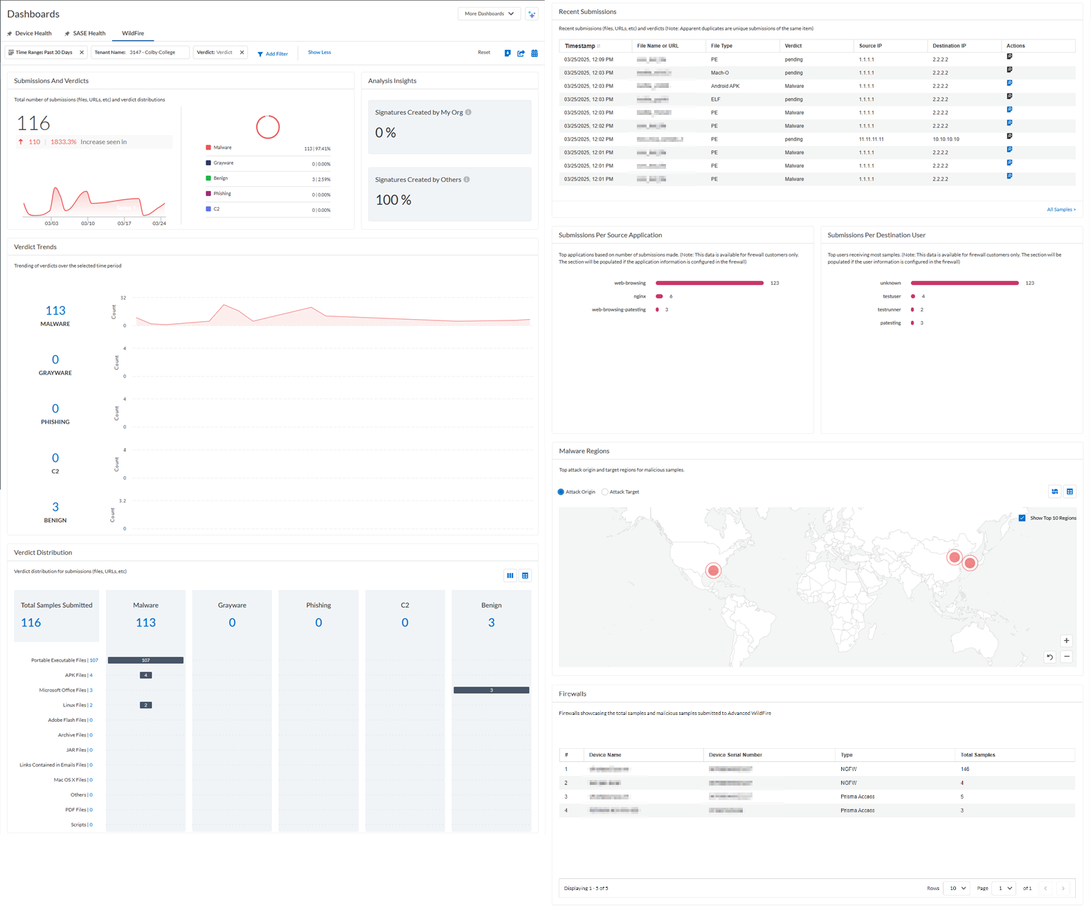 The WildFire dashboard shows you how