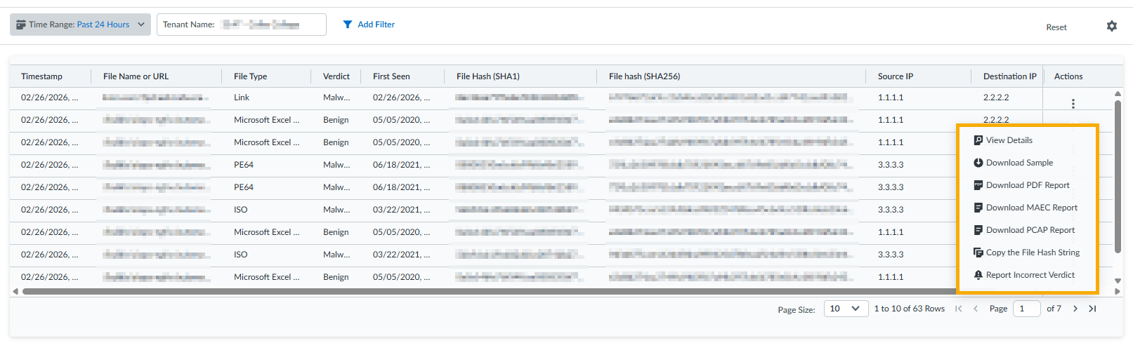 • Actions—Describes the actions you can take related to the selected WildFire submission.