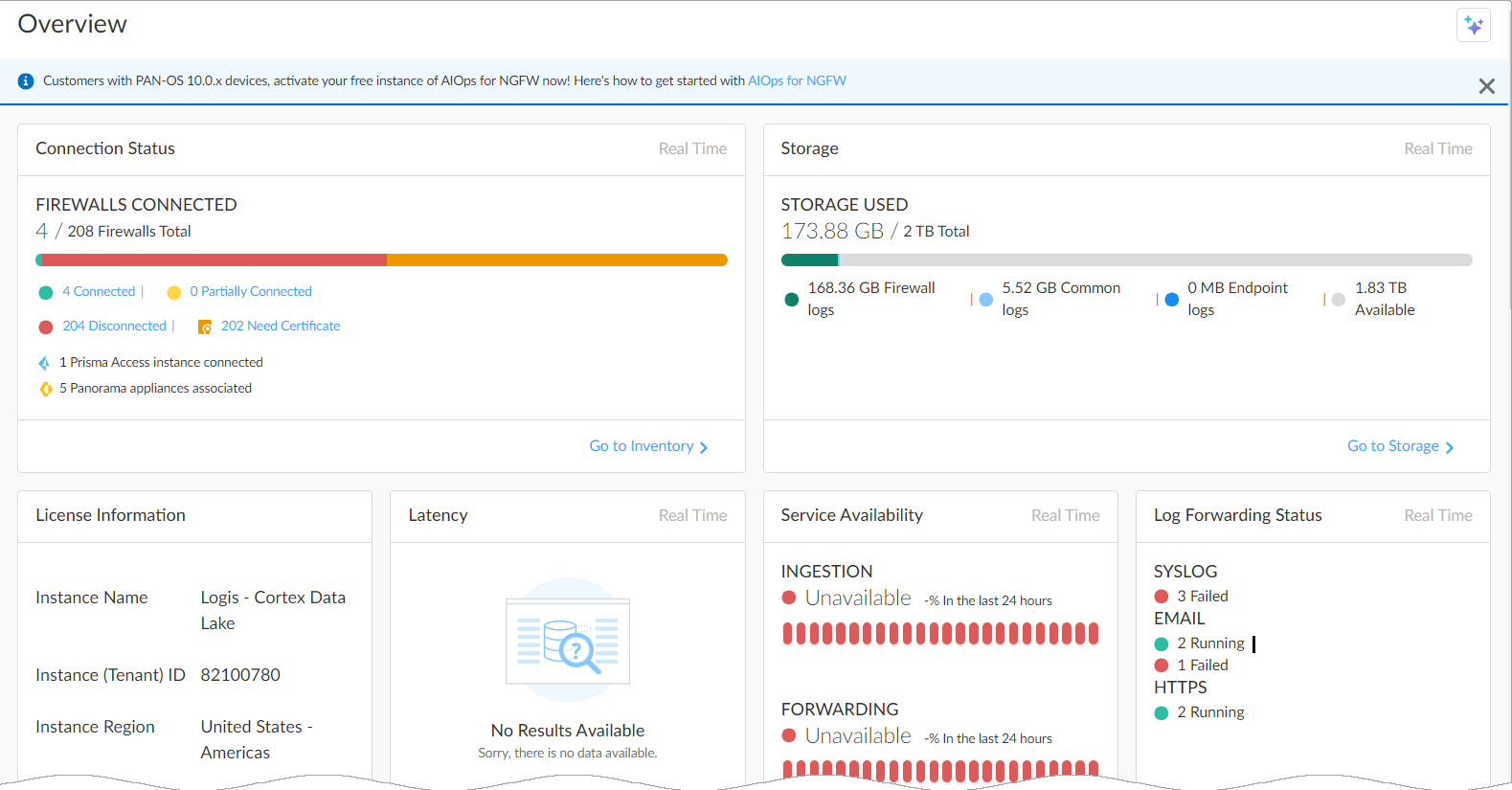 NGFW, Prisma Access, or Panorama appliances- click Strata Logging ServiceInventory