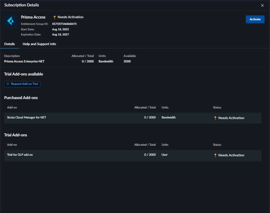 supports trial add-on activation, a Request Add-On