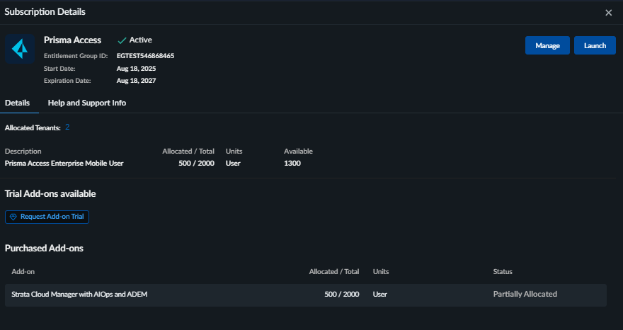 Trial Add-Ons – Displays all active trial add-ons and