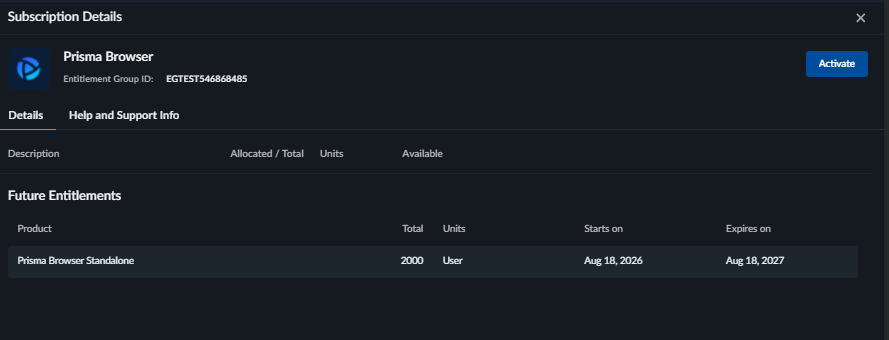 Future Entitlements – If the product license has a future start date,
