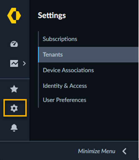 Depending on your environment, you will see one of the following menus for managing your tenants: Tenant Management or Tenants.