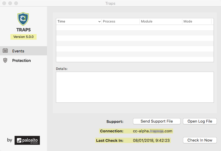 the home page of the Traps console, click Check In Now.