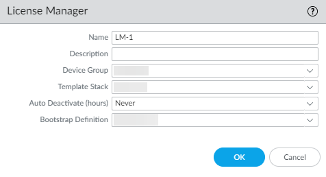 - Select a Bootstrap Definition from the drop-down. The selected bootstrap definition specifies the auth code used by Panorama to license the VM-Series firewalls associated with the license manager.