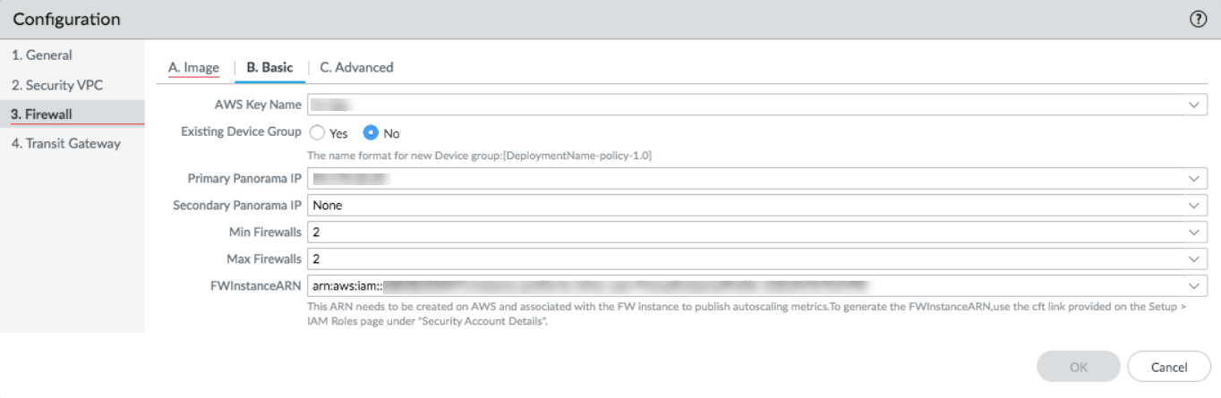 - Min Firewalls—The minimum number of firewalls in an Auto Scaling Group (ASG). A value between 1 and 25.