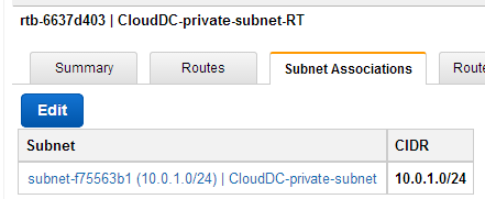 - From the VPC Dashboard, select Route Tables and find the route table associated with the private subnet.