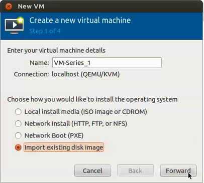 qcow2; Disk Bus—Virtio or IDE, based on your