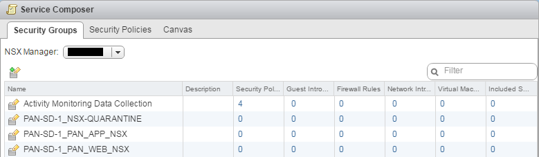 the NSX-V Manager. Creating security groups are required to manage