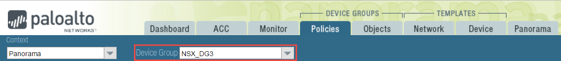 settings to the VM-Series firewalls in each ESXi cluster.When configuring policy rules and objects, verify that you have selected the correct device group.